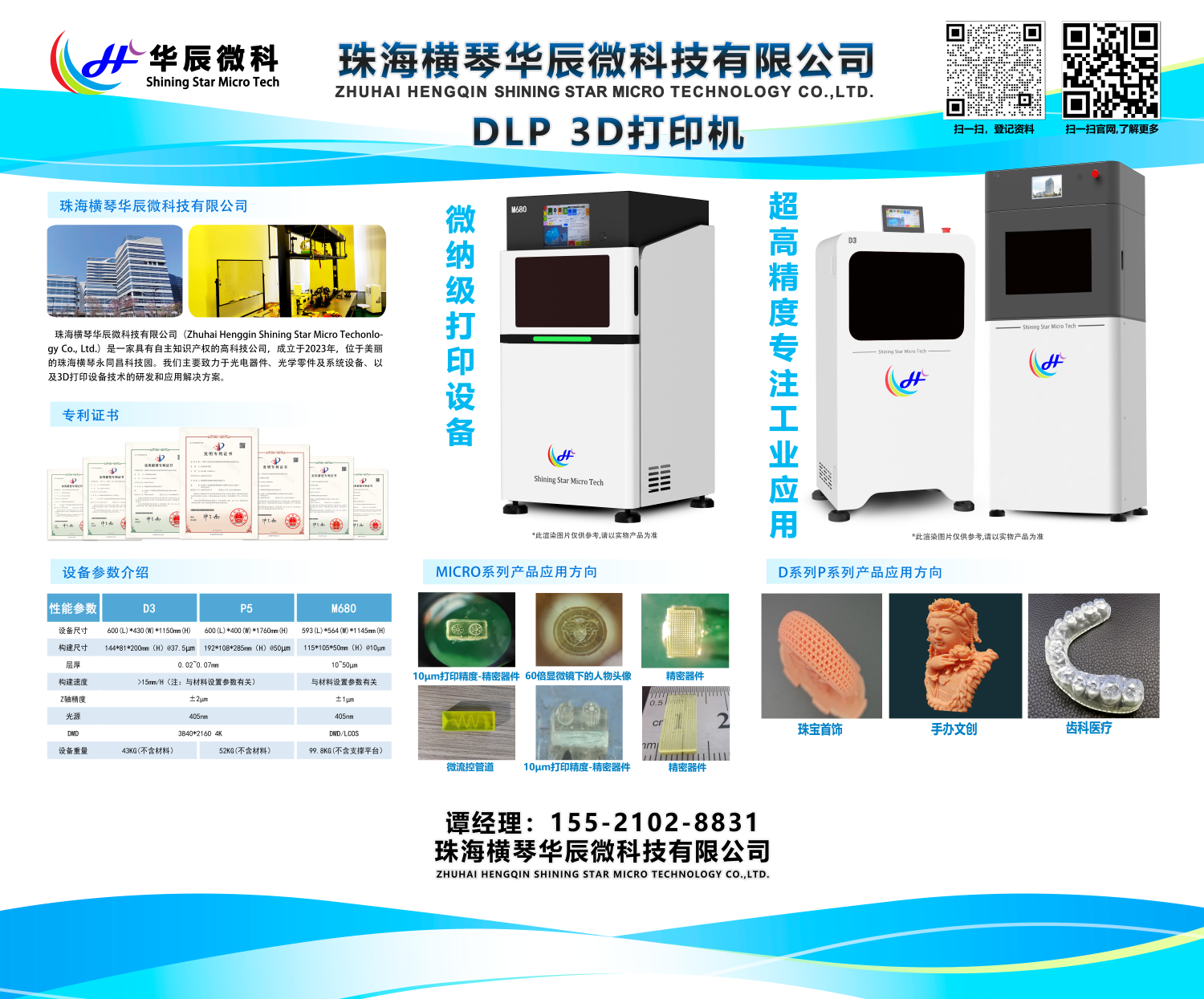 展台中央,华辰微科技最新研发的DLP 3D打印机现场运行演示,吸引众多观众驻足。围绕设备陈列的展示区内,精密医疗器械原型、复杂结构工业部件与高精度文创模型等数十件样品,全方位展现了公司在不同应用领域的技术积累。特别是一款具有微米级精度样品,其出色的表面光洁度和结构完整性,引得专业观众连连称赞。这些实体样件不仅是技术参数的直观体现,更是华辰微科技深耕行业、理解客户需求的最佳证明,让潜在客户对公司"技术驱动价值"的理念有了更深认同。